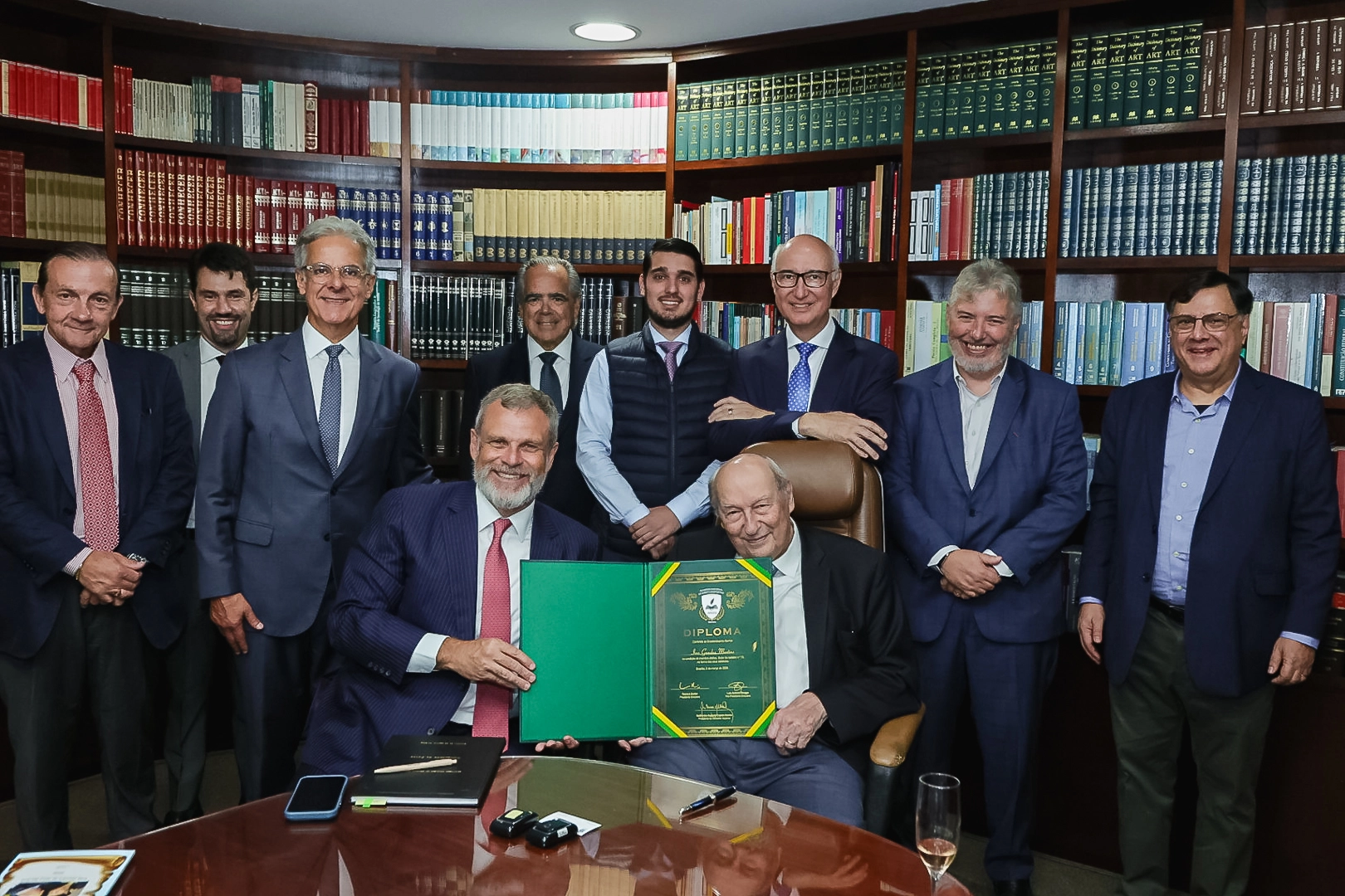 Participaram da cerimônia de posse do Dr. Ives Gandra Martins, junto ao Presidente da Academia Nacional de Direito Desportivo, Dr. Terence Zveiter, os acadêmicos Luiz Antonio Abagge, Leonardo Serafim dos Anjos, Paulo Feuz, Rui César Corrêa, Leonardo Andreotti, Francisco Giordani e Luiz Marcondes, acompanhados do Ministro do TST, Ives Gandra Martins Filho.